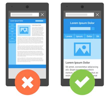 On the left you have a website that’s not mobile friendly. When you view it from a mobile device, the text is too small to read without zooming in and the navigation menu on the left is too small for the average finger to accurately use. On the right is a mobile friendly website. As you can see, the text is larger and easier to read, images are a good size and fit the width of the device and the navigation menu is optimized.
